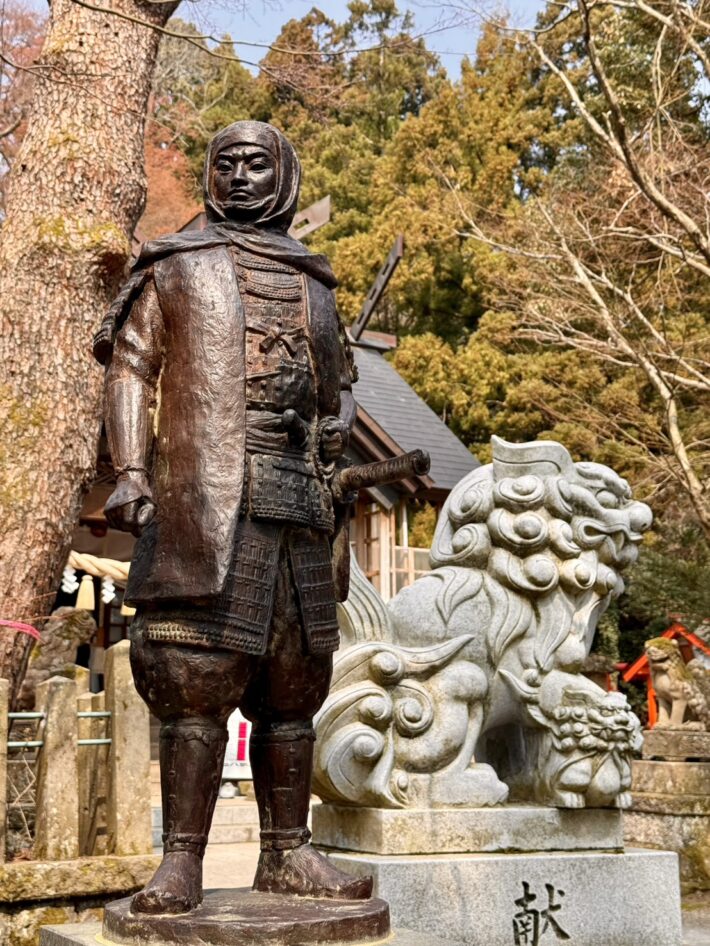 【 凛々しいお姿の「越後の龍」こと、上杉謙信公の銅像が出迎えてくれる春日山神社】